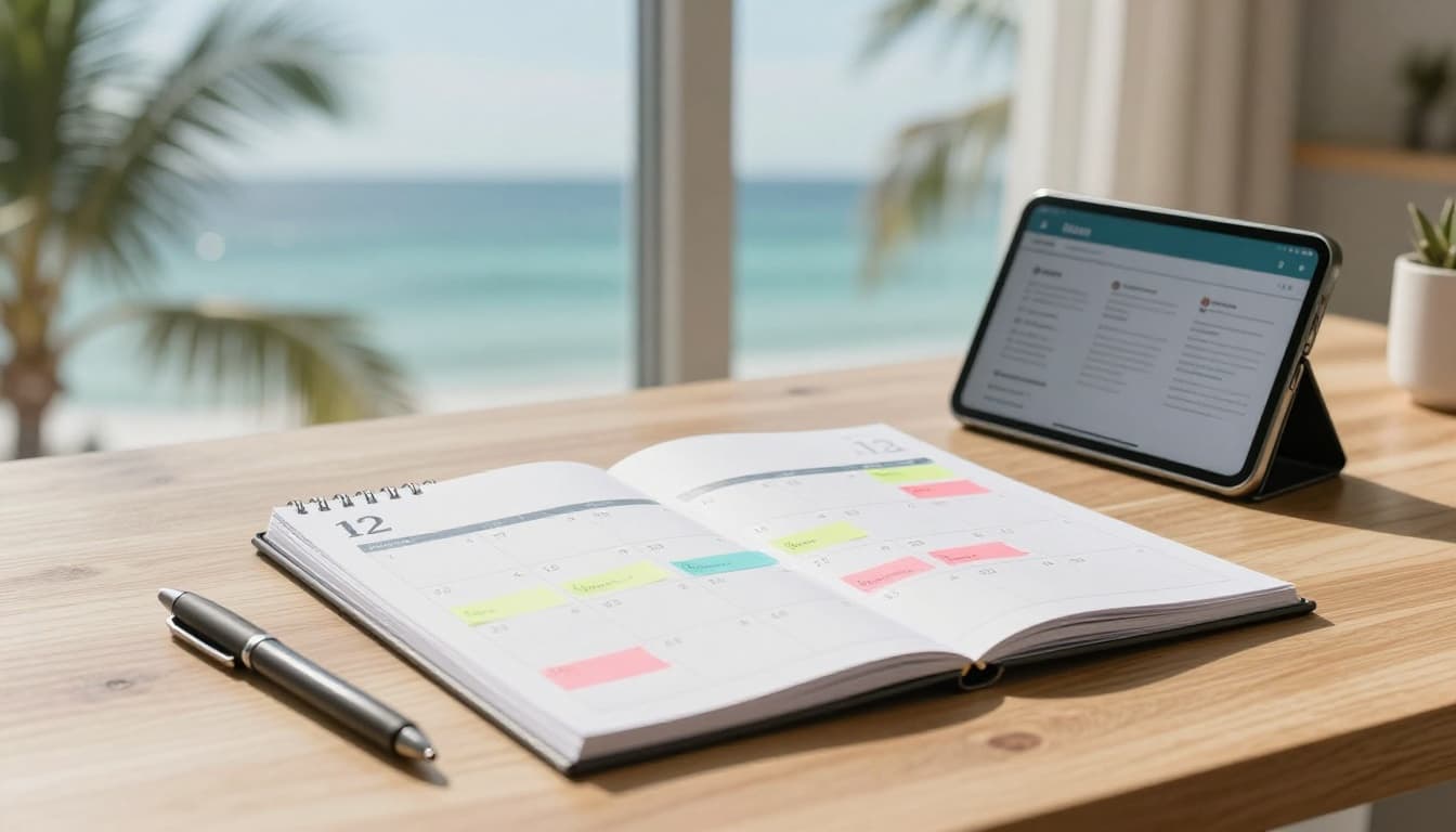 An AI-created featured image showing a simple planning setup for consistent Google Business Profile posting.